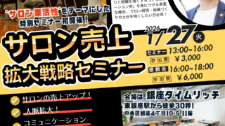 2026年1月27日(月) サロン売上拡大戦略セミナー@東銀座 タイムリッチ銀座 東銀座徒歩1分タイム立地銀座にてサロン向けの合同セミナー&懇親会を開…